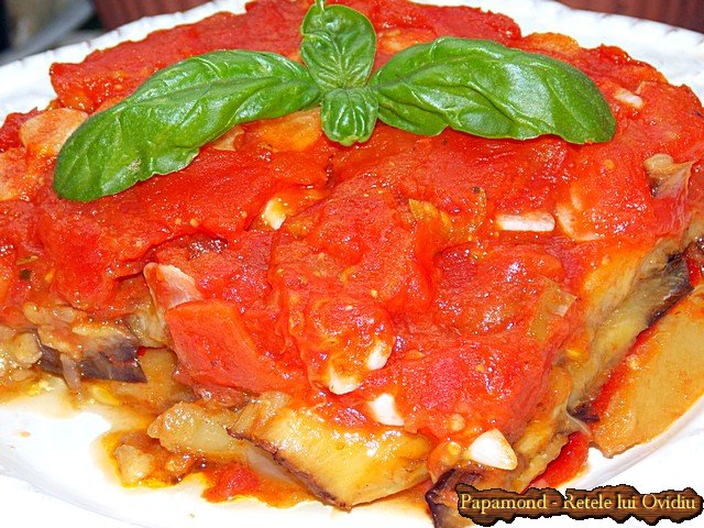 De la arabi a pătruns la greci şi în Balcani, diversificându-se totodată. În cazul de faţă, alegerea legumelor şi modul de combinare este făcută după simţul meu de orientare dar sunt convins că este loc de multă imaginaţie şi participare legumicolă. Aşa că dacă vă inspiră prezenţa unui dovlecel, a unei conopide, a unor rondele de ceapă, lăsaţi-vă cuprinşi de actul creaţiei şi regândiţi structura arhitecturala a lucrării. Asemenea compoziţii nu prea au de ce să aducă eşec în bucătărie. Sunt convins că o să vă placă această nesofisticată musaca de legume, este bine împlinită la gust, delicioasă, iar sosul de roşii – neapărat usturoiat – îi dă mireasma aia, inconfundabilă, de vatră.