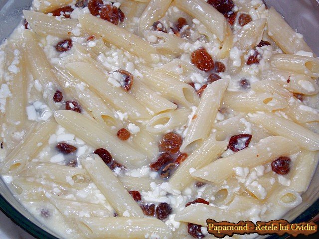 Uşor de făcut, fără prea multă muncă şi cu reţete flexibile, dulci sau sarate, cred că macaroanele cu branză au fost prezente în copilăria oricui. Pentru mine, acea perioadă, a fost vârf în ce priveşte mâncatul de paste cu branza, iar treptat, discret, aproape au dispărut din meniul meu. Cum copii au început să-mi ceară, după ce au mâncat la bunici, paste cu branza, a trebuit să înnod tradiţia şi să rezolv rezonabil cererea. Chiar dacă, probabil, asemenea reţetă este foarte cunoscută, ţin să vă arăt cum mi-am îndeplinit ieri sarcina trasată de stăpânirea pofticioasă. Mă gândesc că poate vreo fotografie, vă îmbie şi vă trezeşte pofta, aşa încât, faceţi în week-end o cratiţă de paste cu branza, stafide şi alte cele.